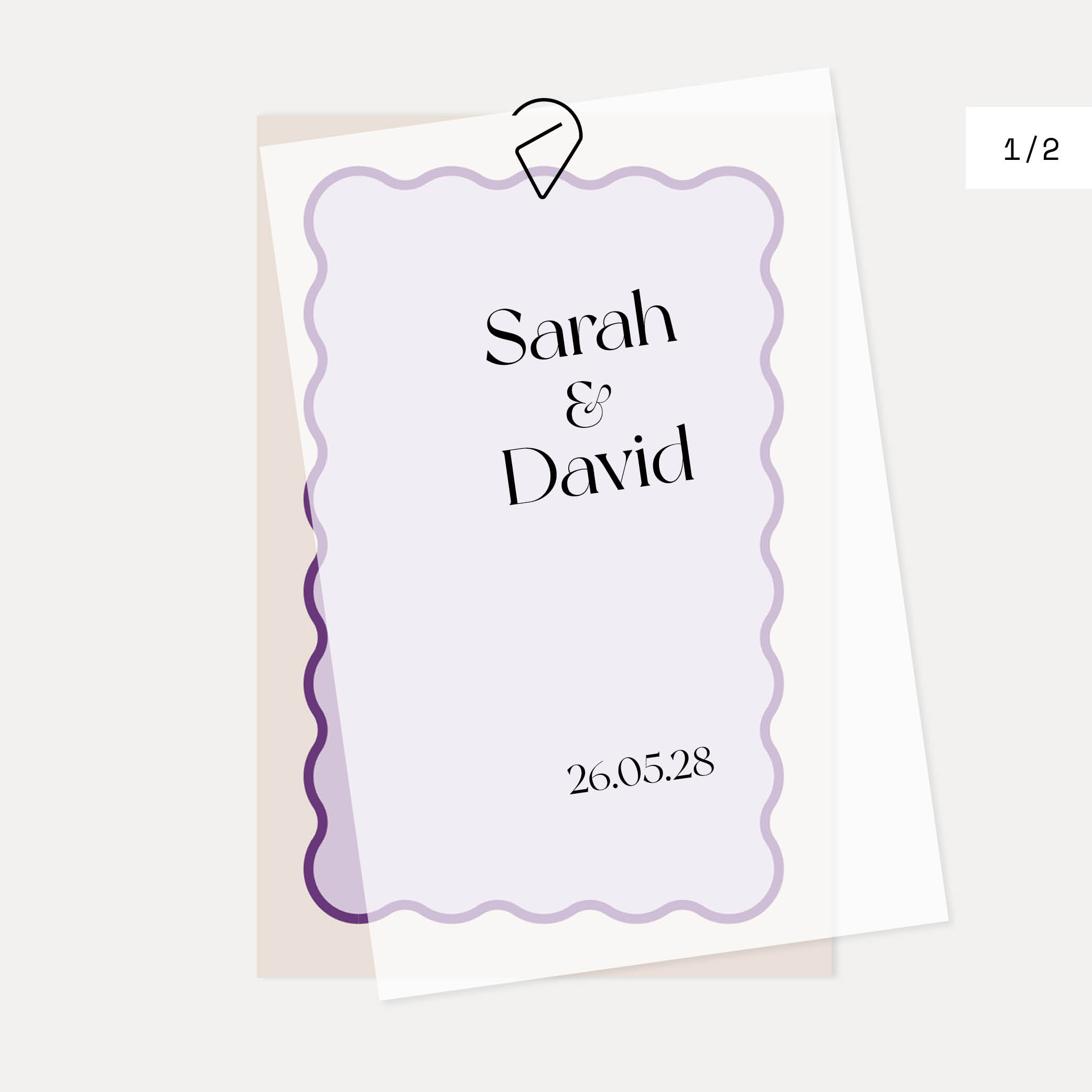 Kalkpapier voorkant (deel 1 van 2). Deze kaart is gedrukt op semi transparant papier wat een heel uniek en bijzonder effect geeft. Deze kaart kan alleen aan de voorzijde gedrukt worden, in kleur en met folie (optioneel). Met witte inkt drukken is helaas nog niet mogelijk! Houd hier rekening mee in je ontwerp. Klaar met het ontwerpen van deel 1? Ontwerp dan deel 2: de achterkaart. Let op: dit ontwerp is excl. paperclip.