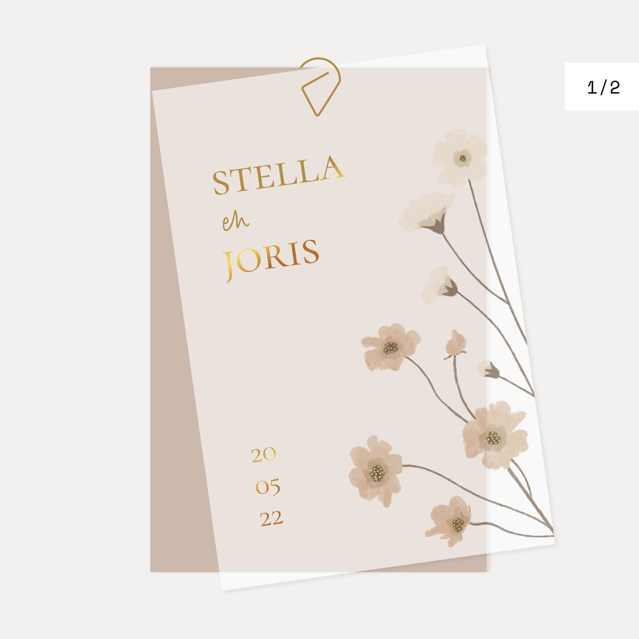 deel 1 - kalkpapier voorkant trouwkaart met bloemen en folie