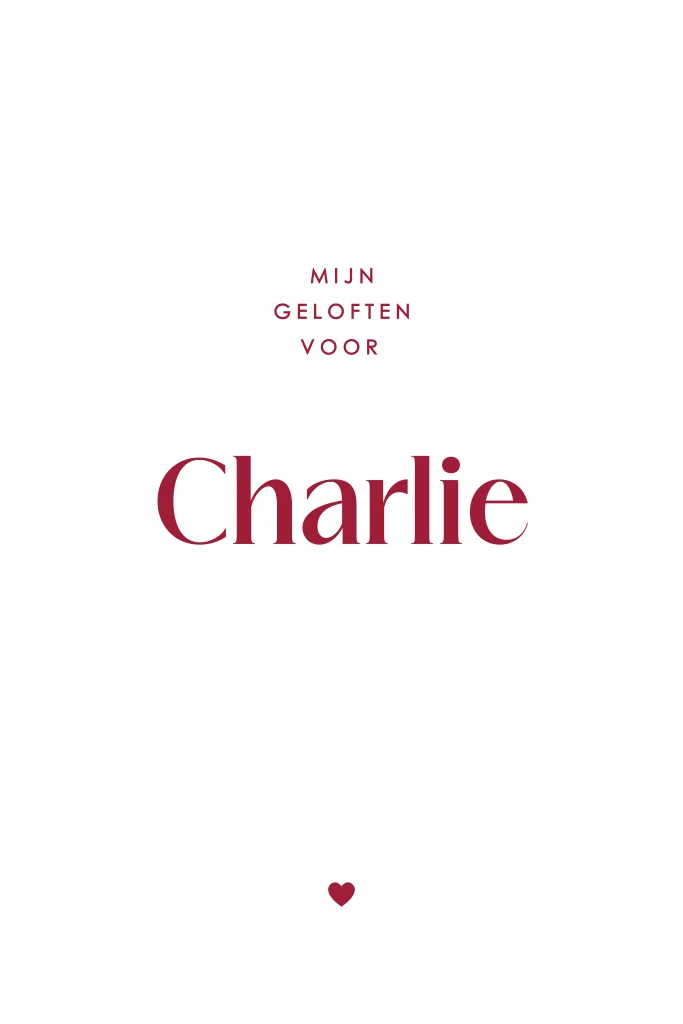 Schrijf je persoonlijke beloftes aan je partner in een mooi geloftenboekje. Kies voor een ontwerp in stijl van je trouwkaart. Zo wordt het een mooi en persoonlijk aandenken aan jullie trouwdag en staat het bovendien prachtig tijdens de ceremonie en op de foto's!