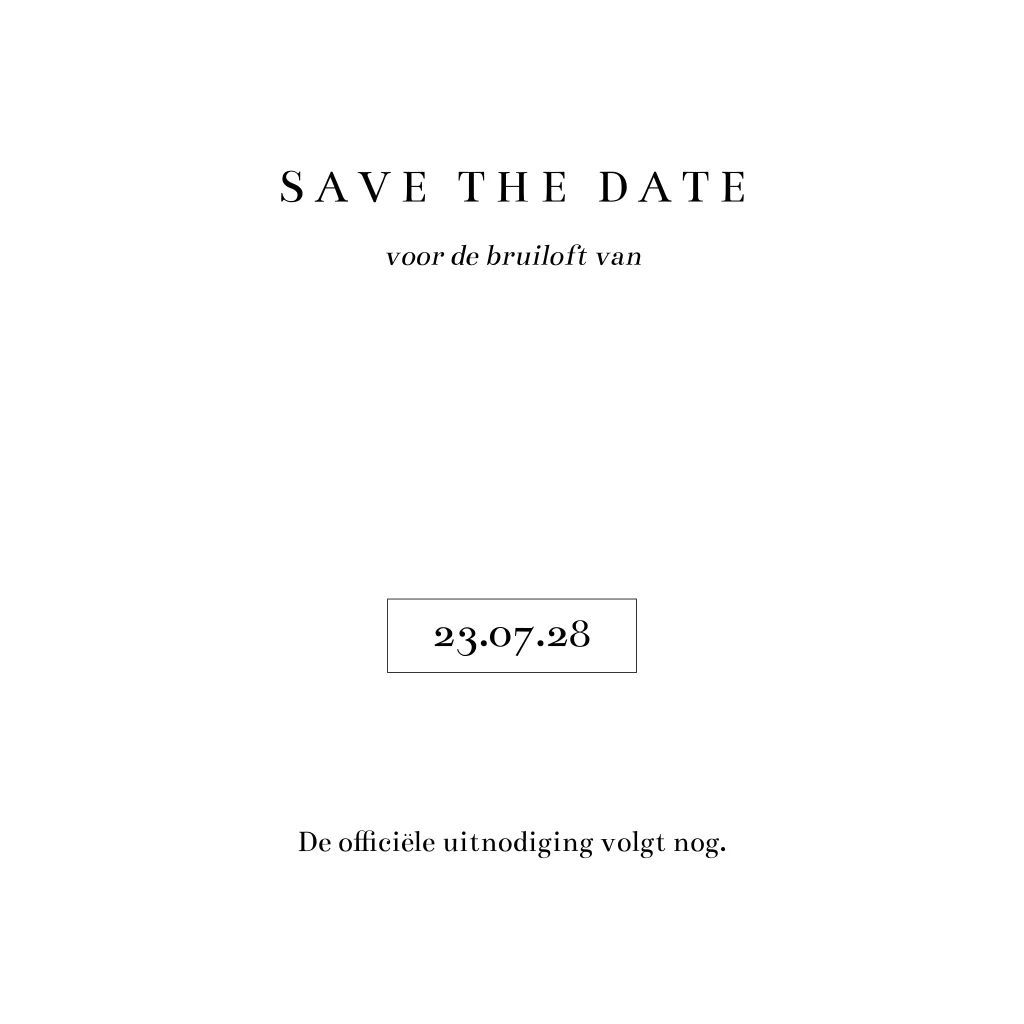 Een moderne save the date kaart met goudfolie. Pas het ontwerp aan naar eigen wens. Hulp nodig bij het ontwerpen van je kaart? Stuur een berichtje, we helpen je graag verder!