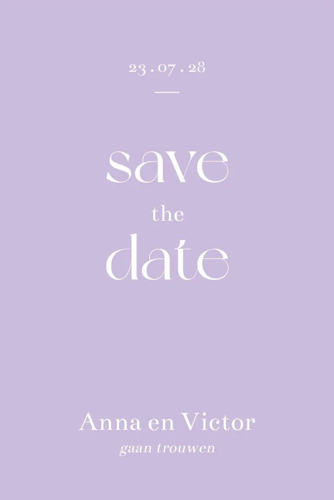 Moderne save the date kaart passend bij de trouwhuisstijl 'Amour pastel' . Pas het ontwerp aan naar eigen wens. Hulp nodig bij het ontwerpen van je kaart? Stuur een berichtje, we helpen je graag verder!