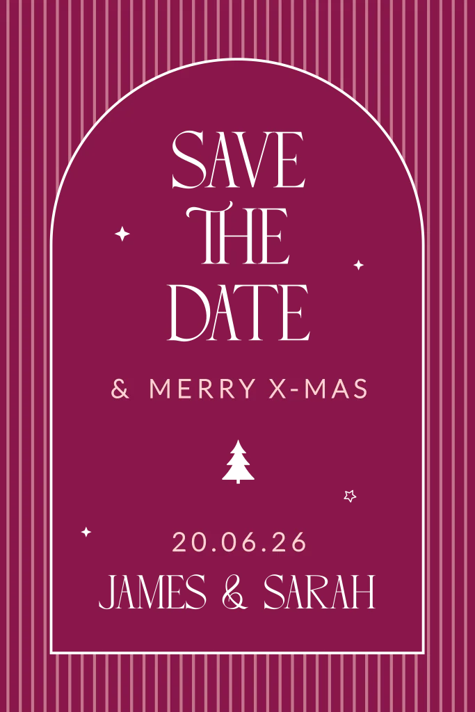 Verras jullie bruiloftsgasten met warme kerstgroeten én de datum van jullie grote dag met deze feestelijke kerst-save the date kaart. Pas het design aan naar eigen wens. Wil je dit ontwerp in een ander formaat, of heb je hulp nodig bij het ontwerpen? Stuur een berichtje, we helpen je graag verder!