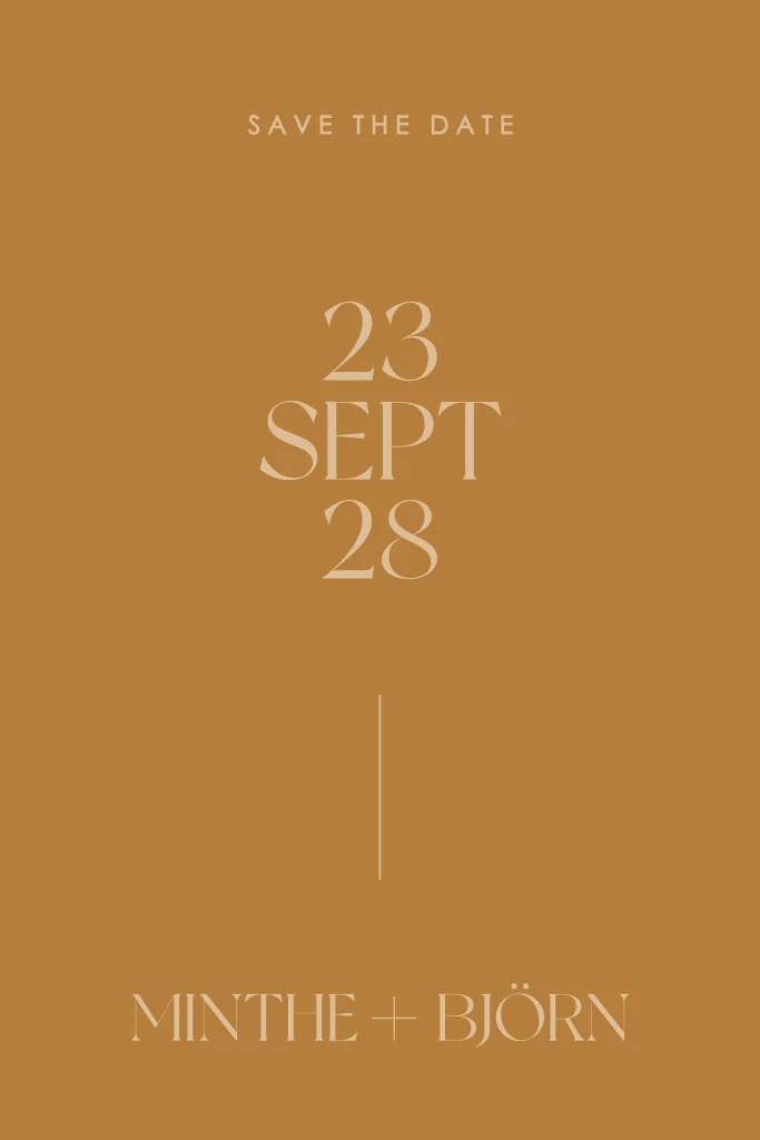 Moderne save the date kaart typografisch. Pas het ontwerp aan naar eigen wens. Hulp nodig bij het ontwerpen van je kaart? Stuur een berichtje, we helpen je graag verder!