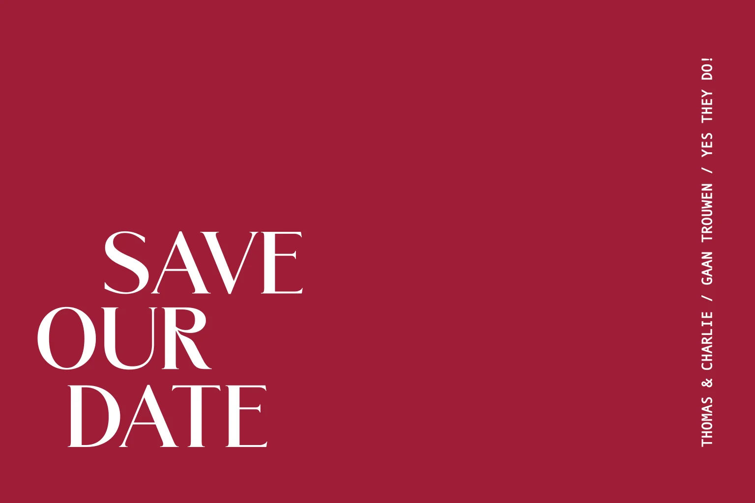 Save the date kaart in wijnrood. Pas het design aan naar eigen wens. Wil je dit ontwerp in een ander formaat, of heb je hulp nodig bij het ontwerpen? Stuur een berichtje, we helpen je graag verder!