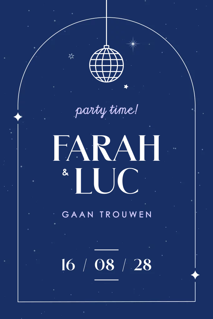 feestelijke trouwkaart met discobol en sterren