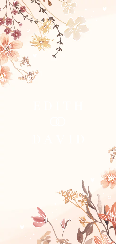 Trouwkaart met bloemen en roségoudfolie. Pas het design aan naar eigen wens. Wil je dit ontwerp in een ander formaat, of heb je hulp nodig bij het ontwerpen? Stuur een berichtje, we helpen je graag verder!