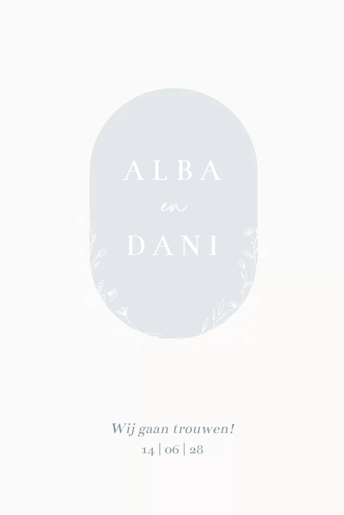 Trouwkaart met halve bloemenkrans in goudfolie. Pas het design aan naar eigen wens. Wil je dit ontwerp in een ander formaat, of heb je hulp nodig bij het ontwerpen? Stuur een berichtje, we helpen je graag verder!