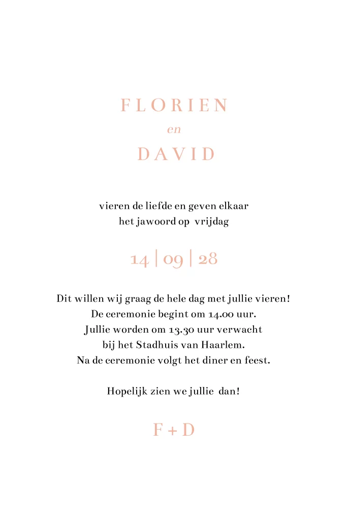 Trouwkaart met bloemenkrans. Pas het design aan naar eigen wens. Wil je dit ontwerp in een ander formaat, of heb je hulp nodig bij het ontwerpen? Stuur een berichtje, we helpen je graag verder! Let op: de lakzegels moet je er apart bij bestellen.